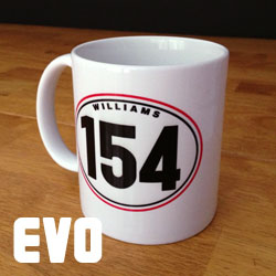 11 oz. mug Super durable dye sub print, dishwasher safe. With race worn effects. |